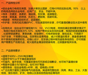 津成cable遵行“用服务赢得市场,用质量赢得客户”的经营主旨,努力为客户创立有价值的津成铝合金电缆。公司质量检验体系,优化生产工艺,努力为客户创造优质产品。该公司定位为客户友好型公司。津成铝合金电缆在电源和电器的使用中十分有用。在营销,设计和开发以及公司运营的过程中,它面向需求群体的需求,以满足并努力超越客户的需求和期望。通过技术创新为客户创造价值,并为客户提供差异化的产品和服务。